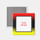 Ett rött, gult och svart foto ram för den fyrkantiga magnet som är designad av Griffin (med hjälp av min hjälp kan du lära dig lite om PSP).