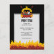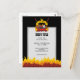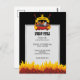 Bensingrillning över kolkol med flammande rulla, banderoll med anpassningsbar över gaffel och spatel.