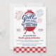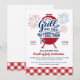 Bjud in vänner och familj till en fjärde juli firande med denna "Grill och Chill Tillsammans" inbjudan. Designen har en klassisk grill illustration med fyrverkerier och anpassad typografi för att betona grillningen och chillningen som kommer att ske tillsammans! Botten av inbjudan har klassisk röd rutig picknick duk för att sätta scenen för en gammaldags firande!