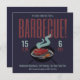 Bjud in din familj och vänner till något de älskar mest, din grillfest! Stor, röd text ovanpå en svart grill med en grafisk bild av en stek och kyckling, blågrön rök som lyfter upp. Marinblå bakgrund. Lätt att ändra textmallar, och perfekt för att bjuda in grannar, familjesammanträffar, välkomstfester, poolpartyn eller speciella födelsedagar. När som helst är en bra tid för att grilla!