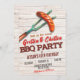 Barbeque-fest inbjudan som har en träbakgrund för att ge vibe av grillning på bakgården. Korv på gaffel som klassisk representation av födelsedagsfirandet som kommer att delas med vänner och släktingar.