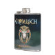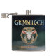 Carry a touch of dark fantasy with you using this Grimmloch flask, featuring the official emblem of the narrative-based RPG by Opulent Code LLC. The detailed horned goat crest, paired with rich teal and gold tones and full Grimmloch branding, creates a bold and refined design that stands out beautifully.