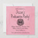 Denna gotiska Pink-o-ween-inbjudan har akvarellkonst med en människo-skalle omgiven av frodiga rosa rosor, svarta blad och spindelnätsaccent. Designen blandar mörka makabra element med mjuka romantiska blommor och skapar en slående balans mellan skönhet och dödlighet.