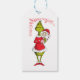 This heartwarming illustration captures the moment the Grinch's heart grew three sizes! The full-body image shows the tall Grinch dressed in his fuzzy red Santa suit, gently holding the tiny Cindy Lou Who, who is sweetly dressed in a matching little Santa cap and pink outfit, holding a candy cane. The Grinch is genuinely smiling (not scheming!), and red lines radiate from his head, illustrating his newfound Christmas joy. It's the perfect image for celebrating the true spirit of the holidays!