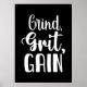 Grind, Grit, Gain, Hustle, Gym, framgångsrik motiv Poster