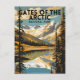 Grind av den arktiska nationalparkens vykortsutformning. Grind i den arktiska nationalparken i Alaska är ett stort vildmarksområde som kännetecknas av hårda berg, pristinfloder och orörda landskap. Den är känd för sin avlägsna belägenhet och brist på utvecklade spår och erbjuder enastående möjligheter för vandring i hemlandet, för att kunna se vilda djur och växter och för att kunna känna lugn i Alaska vildmark.
