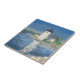 Grindle Point fyr dekorativ kakel. Denna keramiska kakel visar Grindle Point fyr som lyser i den sena morgonsolen på en vårdag i Islesboro, Maine. Målningen använder en strålande palett av blå, gröna, grå och orange toner för att skapa en vacker, lugn vy av det unika fyrkantiga fyrttornet och fyrvaktarens hus.