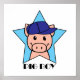 En söt gris-tecknad med blå basebollhatt. Innesluten mot blå stjärnbakgrund och ord 'Gris Boy'.