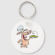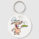 En gris-kock som håller en matplatta. Den här designen ser ut att vara effektiv i den här nyckelkedjan