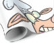 En gris-kock som håller en matplatta. Den här designen ser ut att vara verkligen på dessa figursättningsPappra