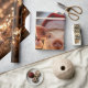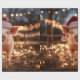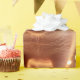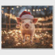Dekoupage-båtar som omsluter papper med ett vackert gris som bär en julhatt och som omges av ljus med julsklämma.