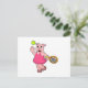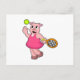 Gris på tennis med tennisracket vykort
