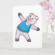 Gris som stretchar på yogamattan kort