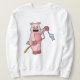 Gris vid fiske med fiskstavar och fisk lång ärmad tröja