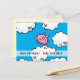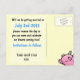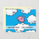Ett glatt "Save the Date" vykort som bevisar att grisar flyger och att drömmar kan gå i uppfyllelse. En glad liten rosa gris dansar på moln prydda med hjärtan mot en blå bakgrund. Under grisen står "Save the Date" och det finns möjlighet för dig att anpassa både baksidan och framsidan av vykortet.