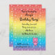 Födelsedaginbjudan med perfekten för gris- och regnbågehjärtabakgrund för en themed födelsedagsfest för gris!