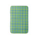 Badmattan med ett originalplätering av plätering mönster i ljusgrön och turkos, med vita och mörk blått accenter. Välj mellan tre storlekar. Matchande duschgardiner finns.