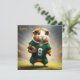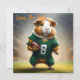 Bild på fotbollsplanen i sin fotbollsuniform och bär en fotboll är Footy Marsvin.