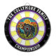 En fet cirkelformad utformning av en grizzlybjörn i skogen, centrerad av ett exakt mål.