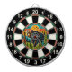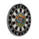 Detaljerad cirkelformad utformning med en grizzlybjörn i skogen med målövertäckning.