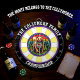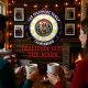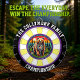 Cirkulär konst av en kraftfull grizzlybjörn i en skog, inramad med ett målöverlägg