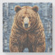 Kraftfulla teckningar som skildrar en björn med en rik, texturerat päls jackar, ställs in mot en lapptäcksbakgrund med blå och grått-toner. Björnen är påträngande och verklighetstrogen och tar upp den med sina realistiska egenskaper.