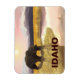 En digital målning av en grizzlybjörn som närmar sig en damm medan sol härjar över avlägsna berg. Det finns också text som lyder "Idaho".