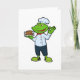 Groda som kock med serveringsfat och kyckling kort