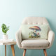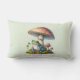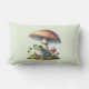 Kudde med en cool illustration. Visar en grön groda som sitter på en grästuva. En stor röd svamp som skyddar honom från väder och vind. Ett par små svampar i närheten.