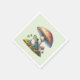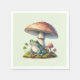 Pappersservetter med en cool illustration. Med en grön groda som sitter på en grästuva. En stor röd svamp som skyddar honom från väder och vind. Ett par små svampar i närheten.