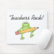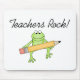 En le grön groda rymmer ett stort ritar, och svarttext läser "lärare vaggar!", på lärare vagga T-tröja, muggar, mousepads, tote bags, kort, klistermärkear, magneter och mer!