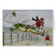 Nedgångar för en leksaksoldat av en groda fördriver klockor för en apa med seashoren och en fyr i bakgrunden i detta 1940 " s-vintagekort.
