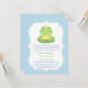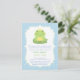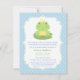 En söt och elegant baby shower inbjudan för att fira den lilla enens snarliga ankomst! Inbjudan visar en söt liten groda som sitter på en lotusblad dynan. Den lilla grodan har en liten krona på huvudet som påminner en om den välbekanta sago historien. Texten använder ord som hoppar och hoppar för att passa med groda temat. Prickig mönster för bakgrunden.