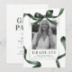 Fira din examenkandidats milstolpe med våra enkla men eleganta examensfestinbjudningar. Varje kort har en slående vit bakgrund, prydd med ett foto av din examenkandidat i en trendig grön akvarellband och -slinga. Vänd på det för festinformationen som är enkel att anpassa.