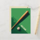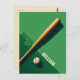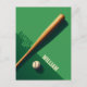 Det här vykortets tema inkluderar en illustration av en basebollträ och boll som placerats på en tvåskuggsgrön bakgrund med texten "slagmannen redo!" med ett anpassningsbart namn. Detta är ett bra vykort för unga basebollspelare och basebollentusiaster.