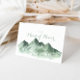 Detta gröna bergsbröllopsfest tackkort är perfekt för en rustik bröllop. Designen har en akvarell handmålad grön berg, inspirerar en landsbygd tema.