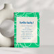 12:14 Denna bebis shower inbjudan har en ljusgrön kant täckt med vita snirkliga linjer, med en krämfärgad mittpanel där alla festsdetaljer sitter i fet blå bokstav. Det är roligt, ljust och perfekt för en blivande mamma som vill ha något som känns fräscht och modernt.