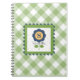 Grön Blå Blommig Gingham Monogrammerad Anteckningsbok