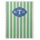 Grön Blå Ränder Klassisk 3 Bokstävers Monogram Anteckningsbok