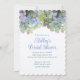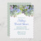 Enkel bröllopsfestinladan med blommor och anpassade textrader. Vackra hydrangeor i nyanser av grönt, blått och lila på vitt papper med elegant kalligrafi. Ändra enkelt texten i en stor stycke, inklusive information om presentlista. Baksidan är sagegrön färg och fästet i hakparentesform är valfritt.