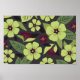 Grön Blommigt på Mörkens Grått-bakgrund Poster