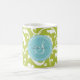 Grön blommönstermonogram för elegant flickaktigt kaffemugg