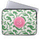 Grön blommönstermonogram för elegant flickaktigt laptop sleeve