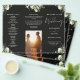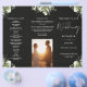 Detta eleganta bröllops tri-fold program har grönska och blommor på svart bakgrund. Designad av Thisisnotme©