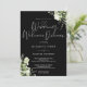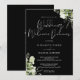 Blomstergrönska, svart-vit bröllops välkomst / repetitionsmiddagsinbjudan med era namn och detaljer om middagen, i chic text, med era monogram initialer på baksidan. Designad av Thisisnotme©