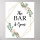 Grön Boho Glitter Ram Baren Är Öppen Bröllopsbar Meny Skylt