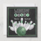 Grön bowlingfest Anpassad inbjudan designad av ITD Sports Center har en grön bowlingklot och grön accentuerad design med käglor och bakgrund i vår signaturstruktur. På baksidan kan du anpassa all information för din egen färgglada födelsedagsfest. Perfekt för din nästa fest. Vi erbjuder anpassade designer, så vänligen kontakta oss med frågor eller önskemål. Må din fest vara fylld av strikes och roliga tider. Ha kul!