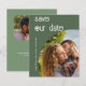 Begränsa grön Mörk Spara datumkortet med en enkel och minimal utformning med sidhuvudet i ett skript för elegant och en contemporary sans serif-teckensnitt. Se till att eventuella gäster markerar sina kalendrar med den här snyggten Spara datumkortet. Lägg bara till ett foto och din information. Anpassa den med dina egna detaljer. Om du vill göra ytterligare anpassningar klickar du på länken "Anpassa" och användor verktyg som är utformat för att ändra mallen.