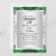 Grön & Silver Sweet 16 Födelsedagsinbjudan. Elegant diamanttira-design. Observera: Alla platta bilder, De har inte riktiga juveler!
