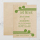 Modern och sofistikerad Deco Chic Save the Date-annonsering i olivgrön med ett par stilrena Art Deco-cirkeldekorationer och en digital konstbakgrund med textur av falskt papper. Denna stilrena Save the Date-annonsering är perfekt för att tillkännage ditt eleganta bröllop. Lätt att anpassa, lägg bara till dina bröllopsdetaljer i de angivna utrymmena. Klicka på "Anpassa" för att hitta fler anpassningsalternativ.